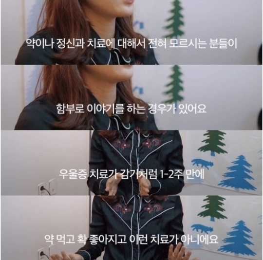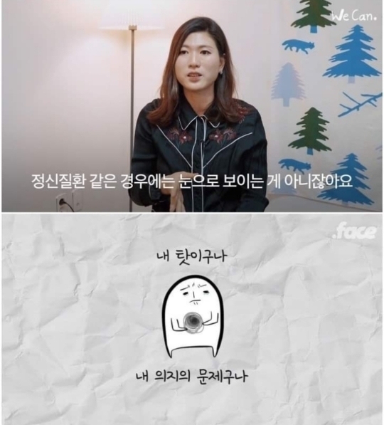 한국은 특히 사회 분위기상 정신과 상담 가는 것도 꺼려 하는 경향이 있어서 더욱 환자가 안 간다고 고집부려서 상태 악화되고 주변인은 더 힘들어지는 경우도...^_ㅠ -