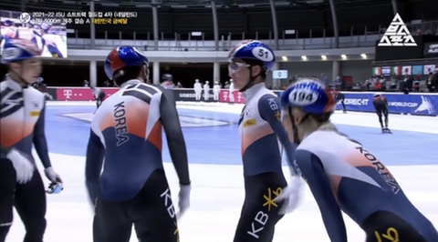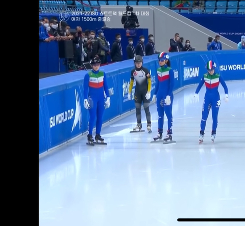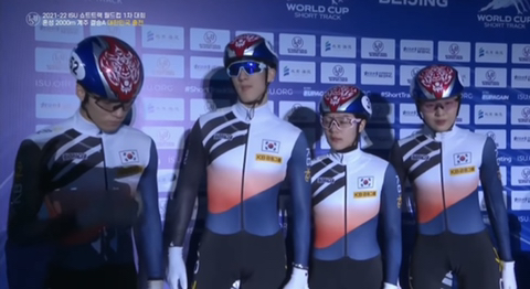 이게 제일 최근 쇼트트랙 월드컵 디자인. 색만 달랐지 한국과 느낌이 매우 유사해짐ㅋ