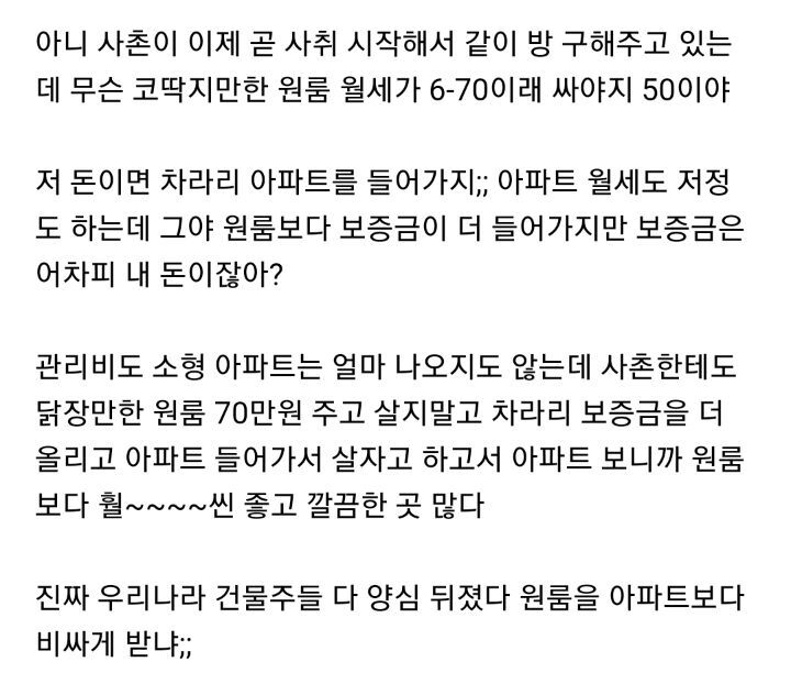 마지막으로 무조건 소형아파트 짱! 원룸 들어가는거 아님! 이런목적으로 쓴 글이 아니야