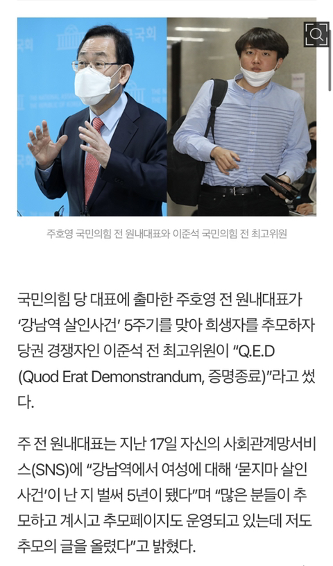 주호영 의원이 강남역사건추모글 올리니까