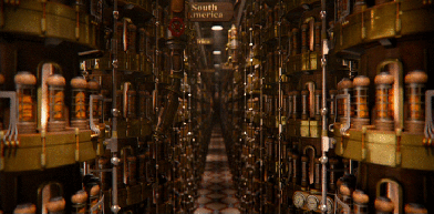 캐셔분들이 현금을 모아 캡슐 안에 넣고 저 파이프로 슝 쏘아보냄