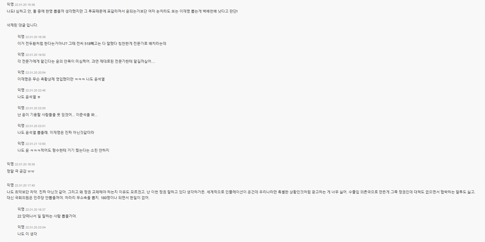 지금도 인간 문재인에 대해서는 존경심을 가지고 있어. 하지만 대통령으로써의 문재인에 대해서는 많이 실망한게 사실이야. 집값이라던지 여러가지 내기준 정말 아닌부분들이 많앗다고 봐.
