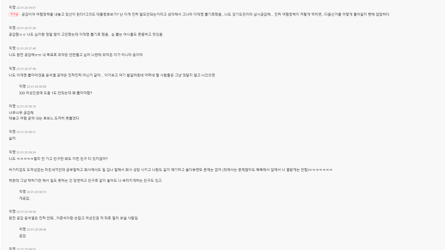 나는 윤석열이 나라 잘이끌지 모르겟으나 당선되는데 혁혁한 공을 세운'여혐정책'을 내세울건