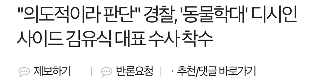 21일 헤럴드경제에 따르면 서울 강남경찰서는 지난 15일 동물권보호단체 케어로부터 고발장을 접수받아 김유식(주)디시인사이드 대표를 동물학대 행위 방조 혐의로 입건했다.