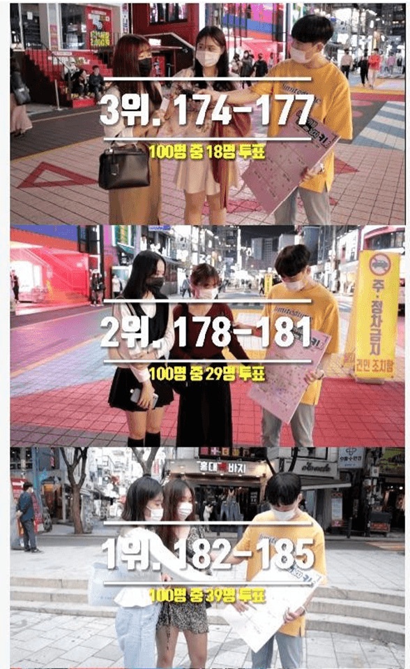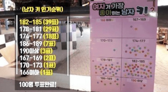 8.여자가 생각하는 최고 이상적인 키는 181~185 사이