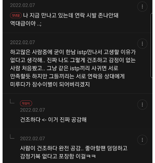 ISTP남자와 연애해본 여시들의 후기