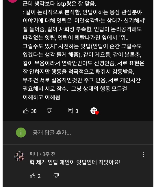 ISTP INTP 끼리 연애해본 여시들 댓글로 자유롭게 후기 써보기
