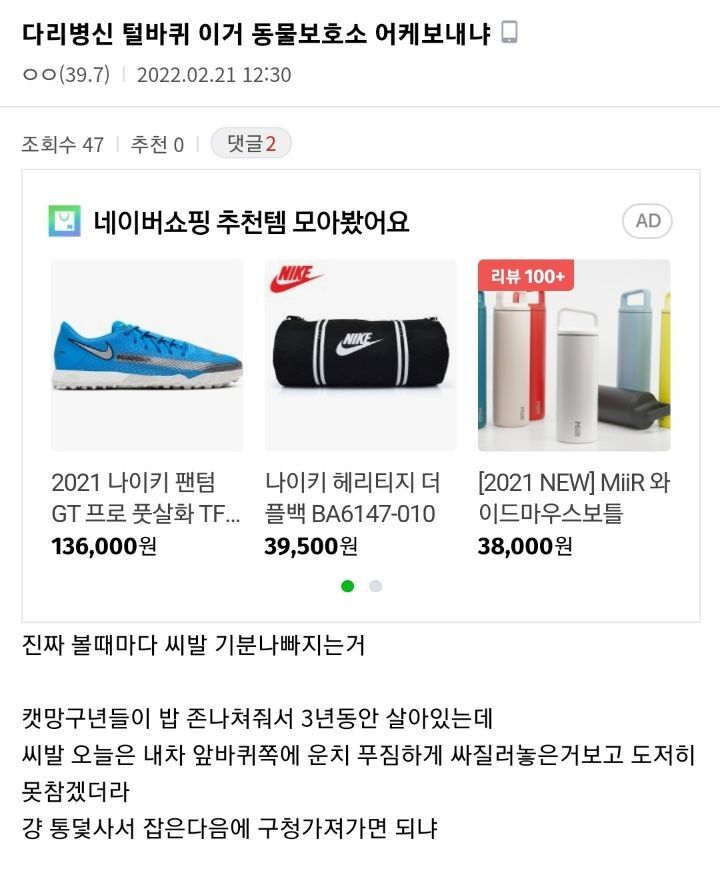 다리 아픈 길고양이를 다리병신 털바퀴라고 부르며 캣맘들이 겨우 살렸더니 굳이 잡아다 딴데 버리겠다는 디시남