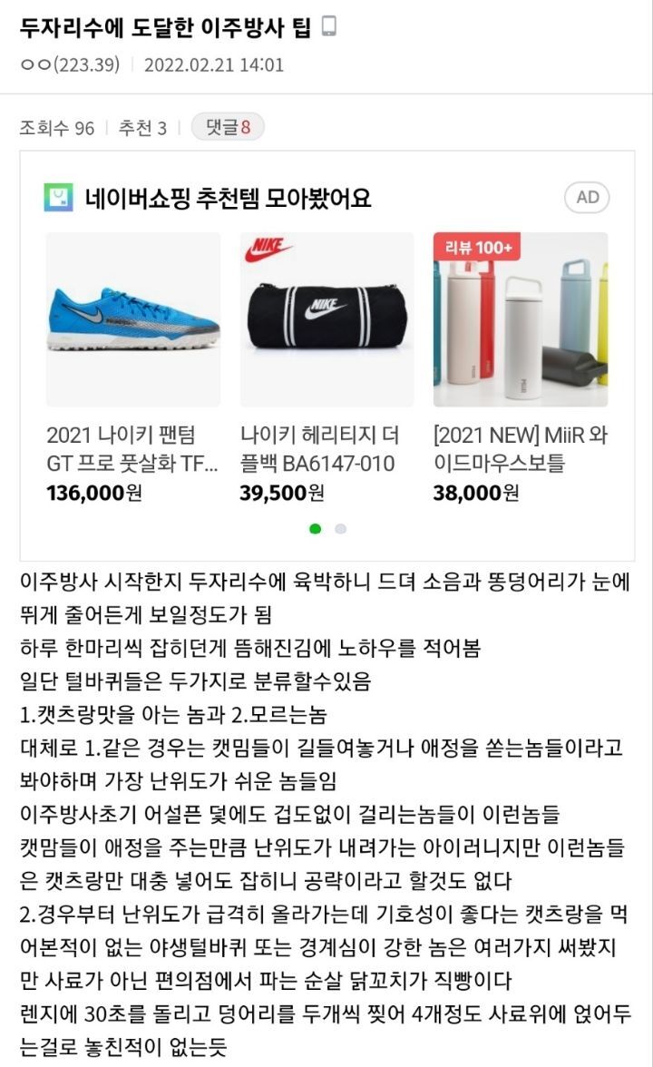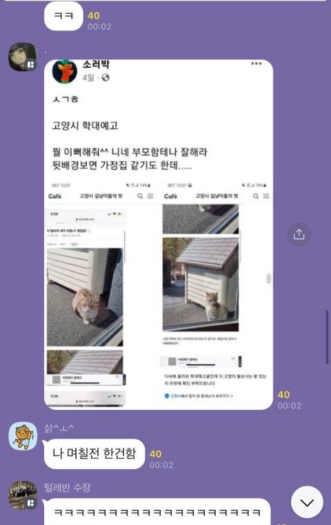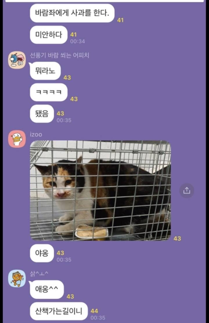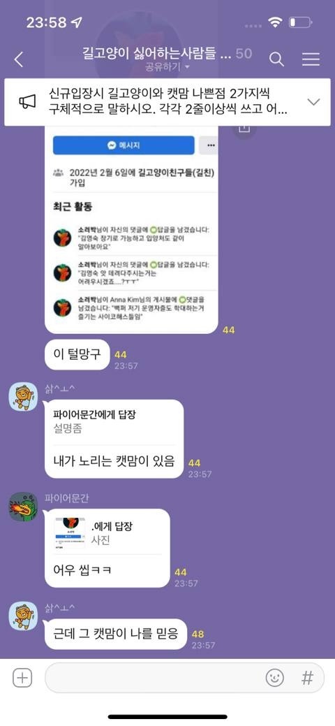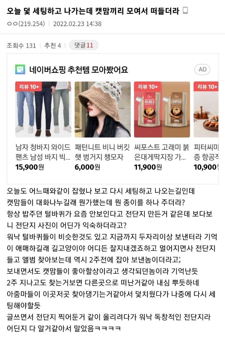 고양이를 잡는 노하우와 팁을 공유하며 이주방사를 서로 권하고 있어