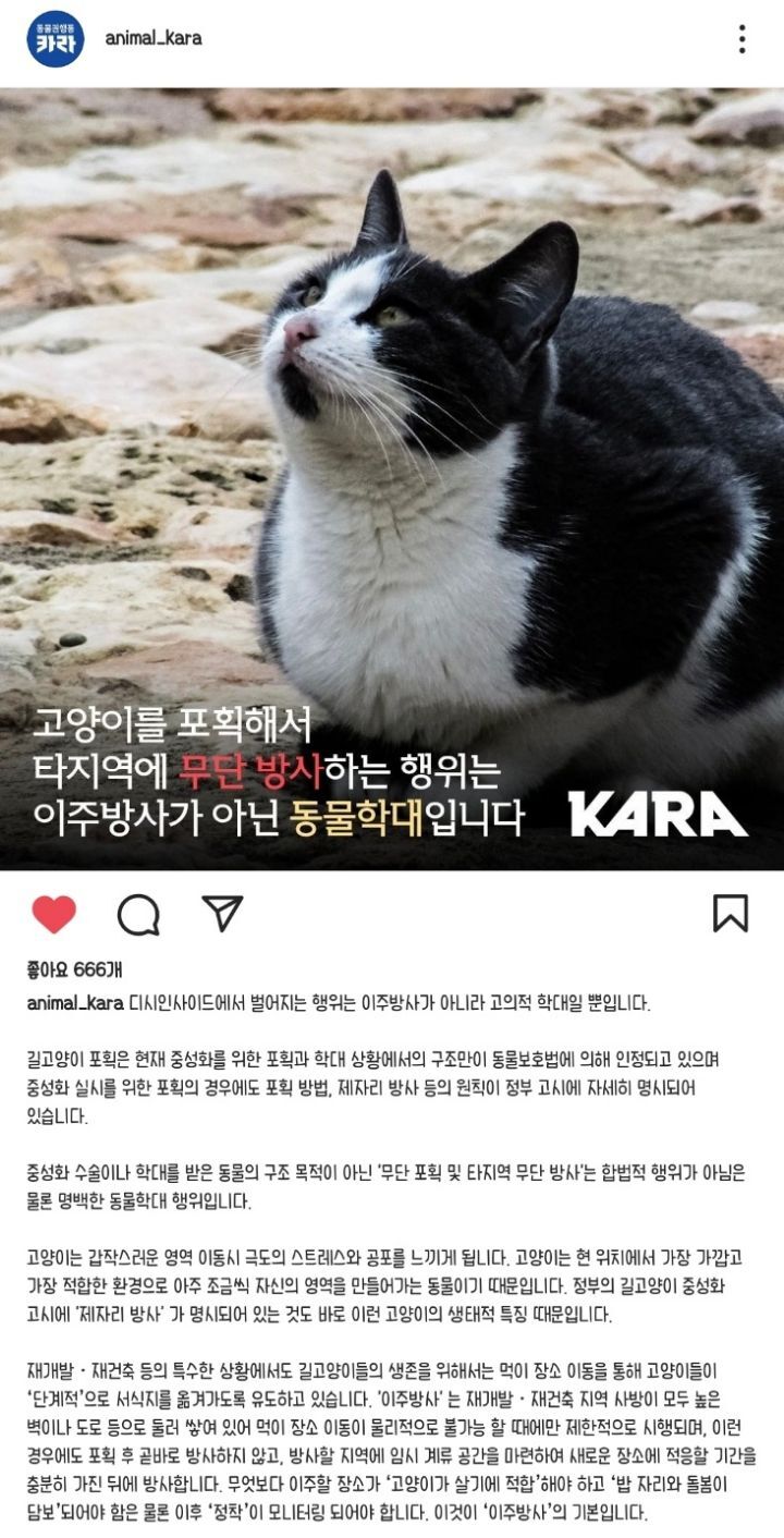 (이주방사에 대한 동물보호단체 카라 입장문)