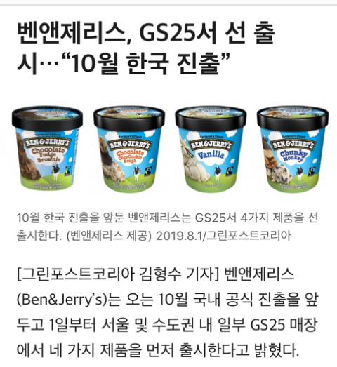 혹시나 해서 말하는데 저는 벤앤제리나 지에스랑 연관 1도 없는 그저 벤앤제리 처돌이일 뿐입니다...