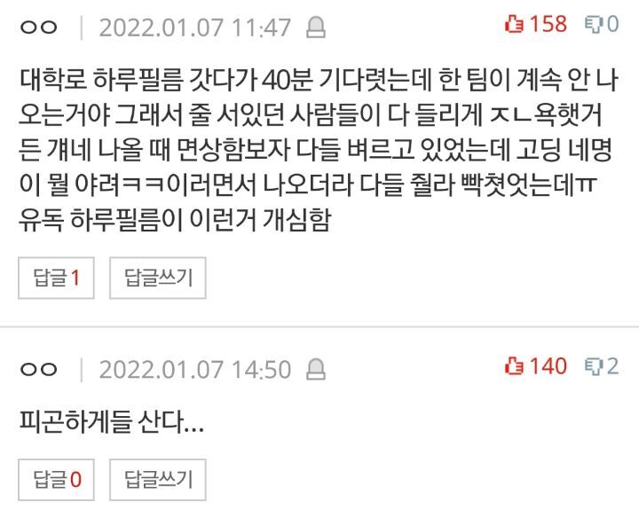 작성자ididx 작성시간 22.02.28 기싸움 할 체력도 없다 이젠..진짜 힘들거든요...ㅎ