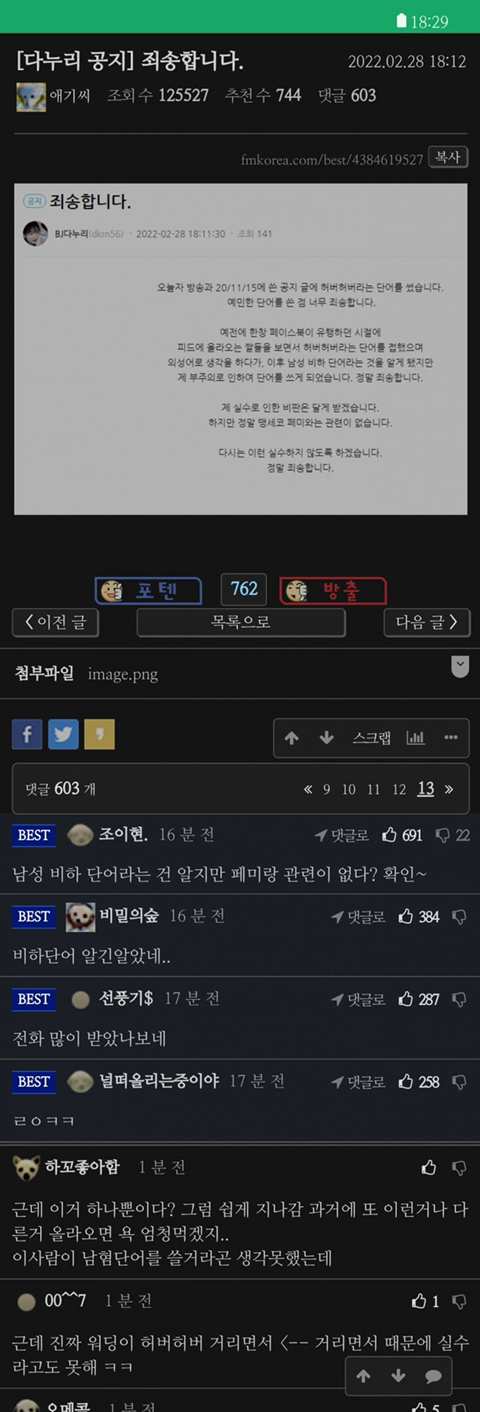 [씹빨쌔끼뜰]잼미사건 이후 또다른 여자bj 타깃으로 살인시동거는 펨코 유저들 작성자양털부들부들|작성시간22.02.28|조회수7,485 목록 댓글 34 글자크기 작게가 글자크기 크게가 출처 : 여성시대 양털부들부들여성bj 가 방송중 허버허버 단어 썼다고 악플 몇천개 달면서 잼미한테 했던 메갈몰이/악플놀이 그대로 하는중 다음검색 현재 게시글 추가 기능 열기 북마크 공유하기 신고 센터로 신고 댓글 댓글 34 댓글쓰기 답글쓰기 댓글 리스트 작성자마자화자부라자 | 작성시간 22.02.28 살인자. 작성자페퍼민트 | 작성시간 22.02.28 펨코개새들 작성자내다버린2년반 | 작성시간 22.02.28 고소로 용돈 벌자ㅠ 작성자러너 | 작성시간 22.03.01 쟤들한테는 여자 죽이는게 스포츠인듯 작성자Baby Driver | 작성시간 22.03.01 개노답들아 제발 사라져라 댓글 전체보기