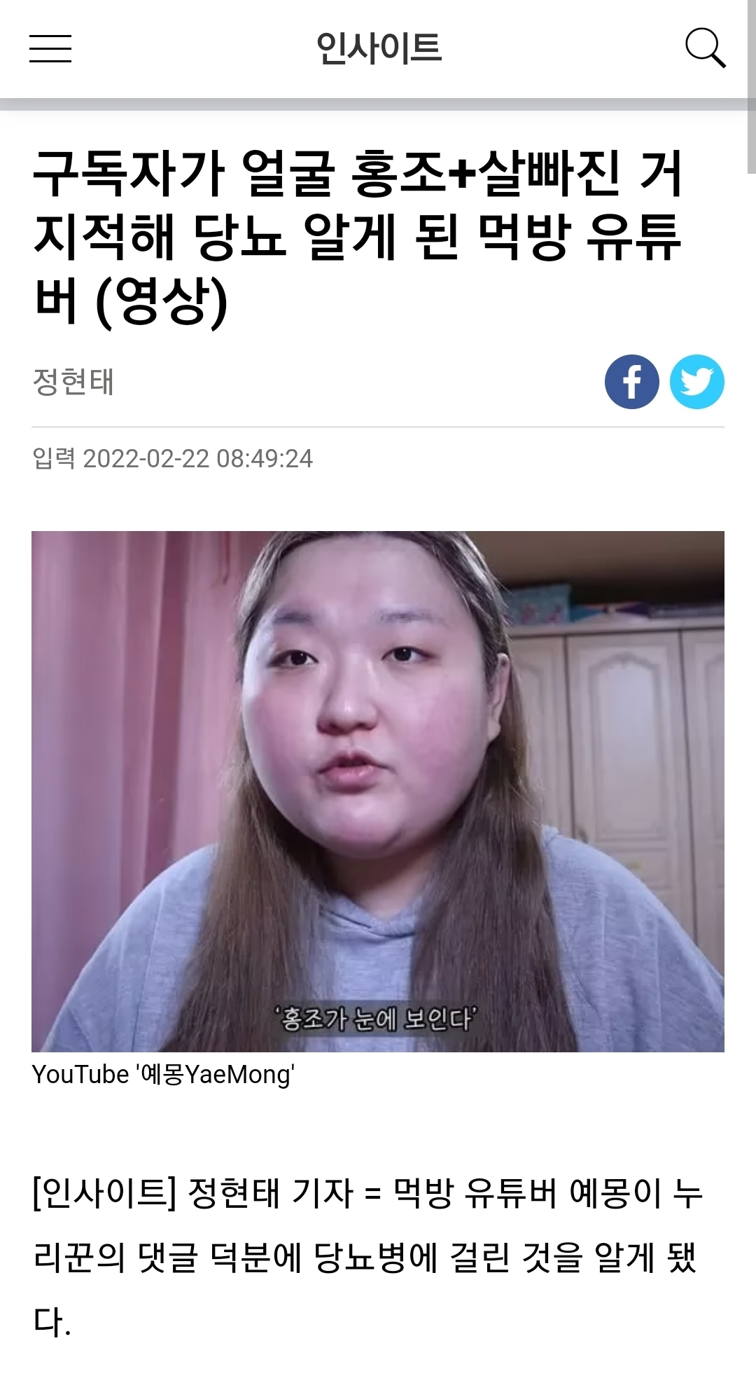 예몽은 당뇨 가족력도 없다고 덧붙였다.