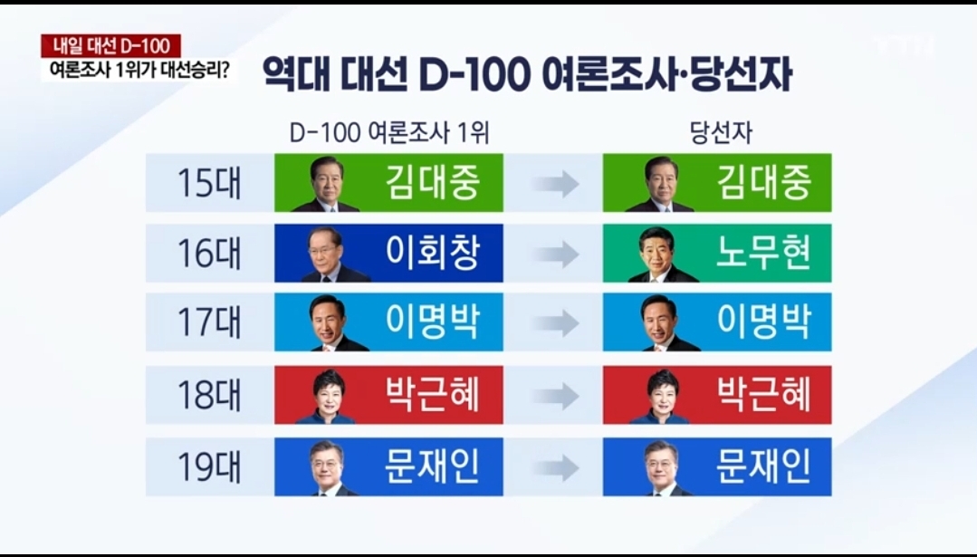 노무현 대통령의 경우, 정몽준 후보와 단일화를 했고 노+정의 응답률이 이회창보다 높았음.