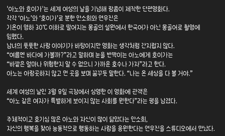 그때 그 안소희X연우진 단편영화 <아노와 호이가> - 스퀘어 카테고리