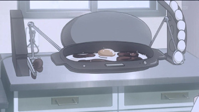 햄구이랑 계란 후라이를 자동으로 해주는 기계.