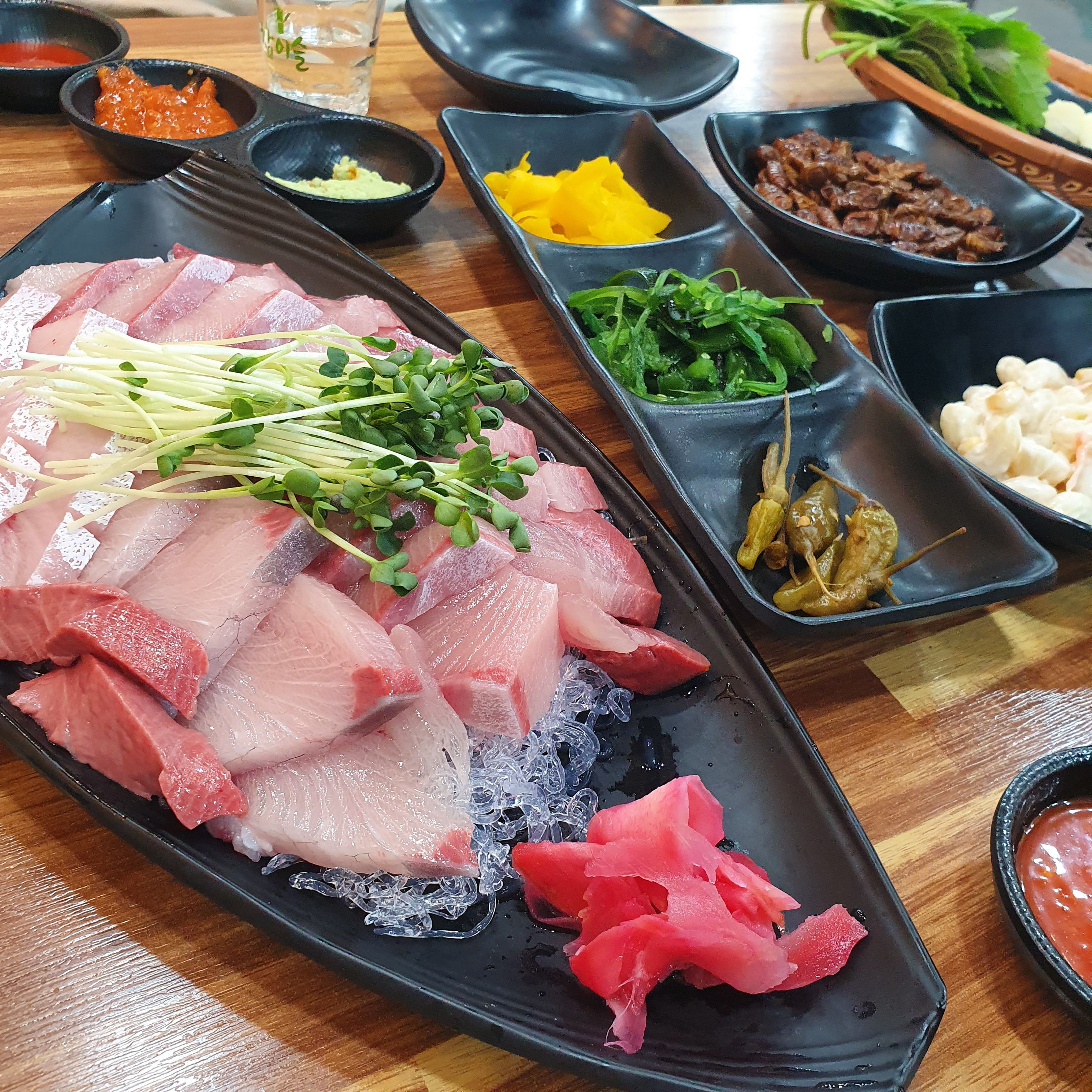 모둠회 (밑반찬 무한, 모둠회, 지리탕)인당 2만원