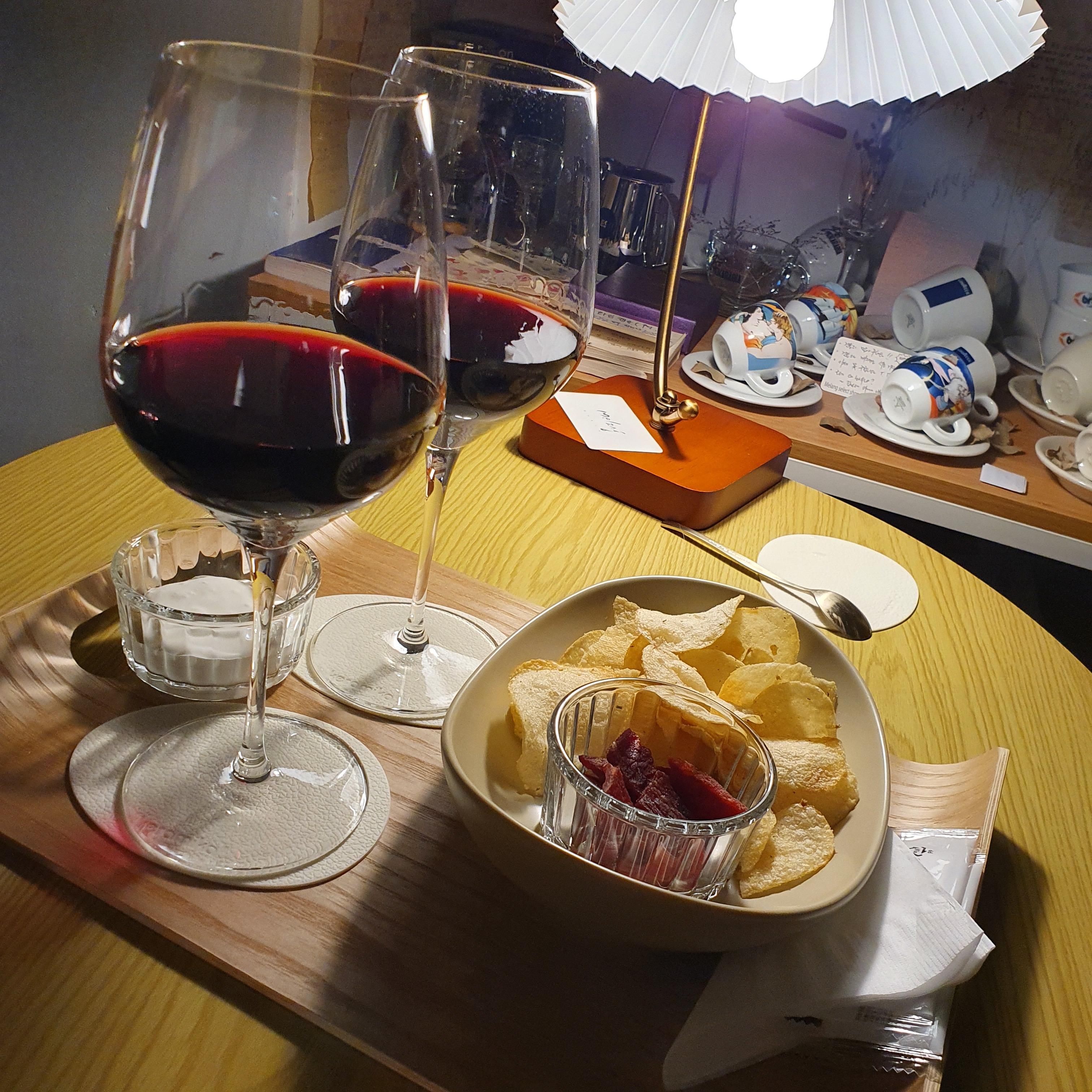 1차는...집근처 별거 다파는 카페에서 학센이랑 와인한병 뚝딱
