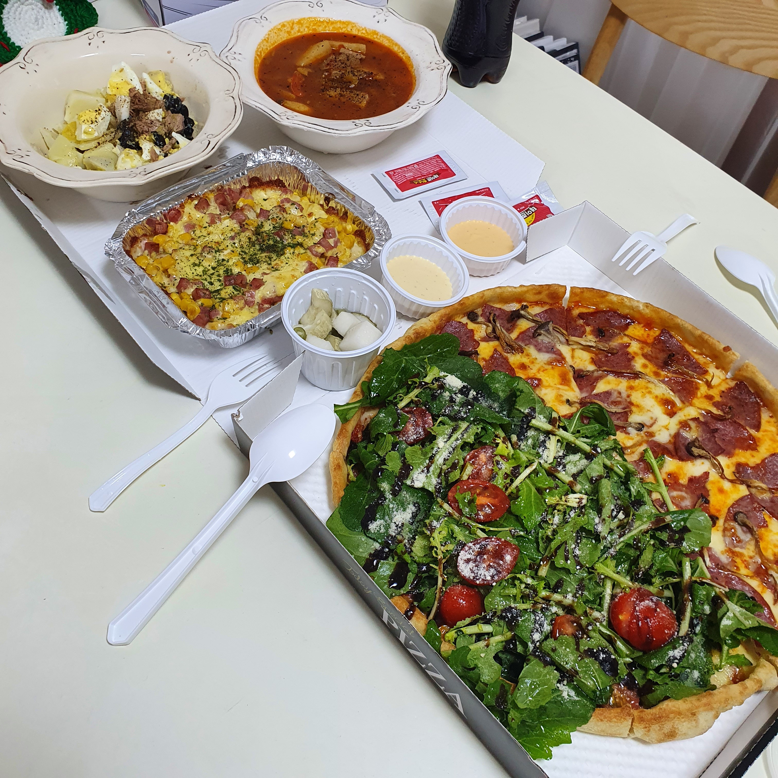 또 집근처 피자집..존맛..근데 반반 다른건 넘 매웠어 루꼴라 최고