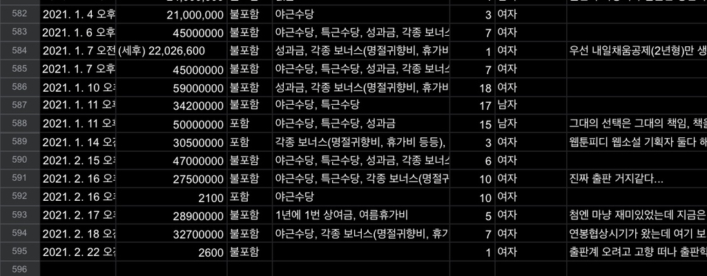 익명의 편집자가 앞으로 출판계에서 일하게 되거나 혹은 앞으로도 계속 출판계에서 일할 사람들에게 도움이 되길 바라는 마음으로 만든 연봉 시트