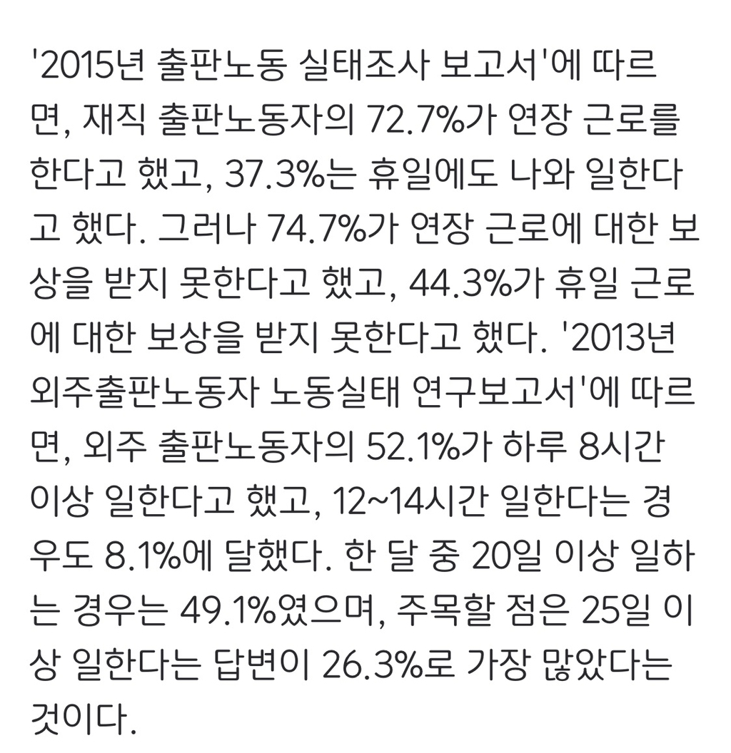 고학력 편집자, 마케터들이 야근수당도 없이 일하는게 당연한 업계..