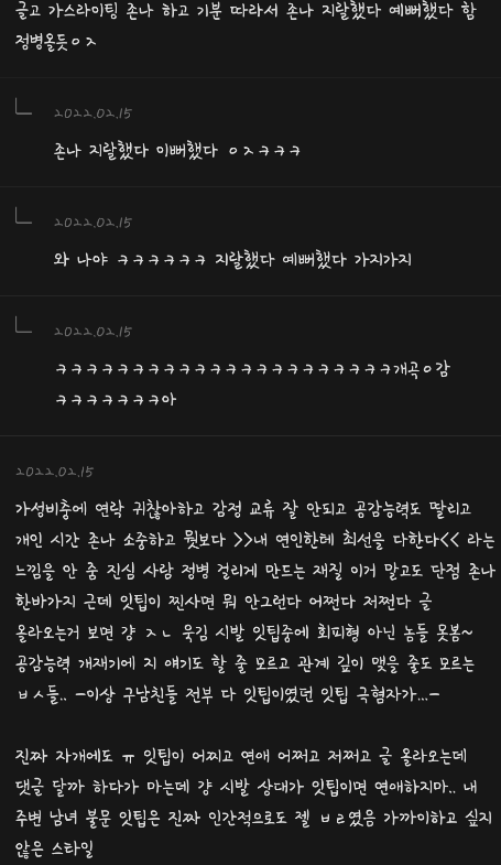 10. 잇팁은 연애 왜 하는지 모르겠다는 평