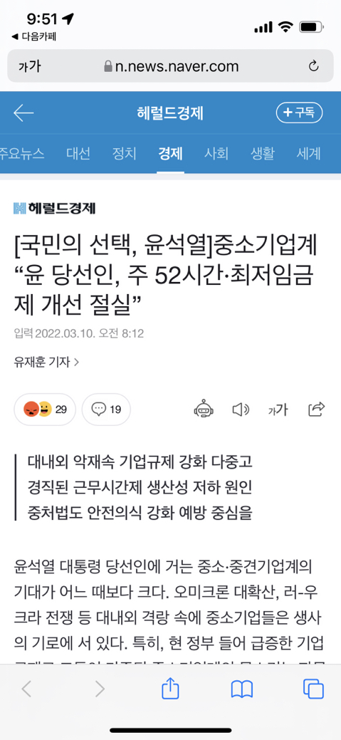 [여시뉴스데스크][국민의 선택, 윤석열]중소기업계 “윤 당선인, 주 52시간·최저임금제 개선 절실” 작성자로또일등강쥐|작성시간22.03.10|조회수10,047 목록 댓글 117 글자크기 작게가 글자크기 크게가 출처 : 여성시대 로또일등강쥐https://n.news.naver.com/article/016/0001961811네 시작이요 다음검색 현재 게시글 추가 기능 열기 북마크 공유하기 신고 센터로 신고 댓글 댓글 117 댓글쓰기 답글쓰기 댓글 리스트 작성자펭이버섯 귄카 | 작성시간 22.03.10 안 뽑은 사람은 구제해줘 ㅅㅂ 작성자이재명(친칠라) | 작성시간 22.03.10 ㅋㅋㅋㅋㅋㅋㅋㅋ 작성자드럼스콜링 | 작성시간 22.03.10 해 시발ㅋㅋㅋㅋㅋ나도 프리랜서라서 나만 잘 살면 되지 뭐^^ 작성자더불어민주당 남자만나자 | 작성시간 22.03.10 아 개빡치네 작성자누피누피스누피 | 작성시간 22.03.10 아시발 왜 내가 피해보냐고 ㅠ 좆같네 진짜 댓글 전체보기