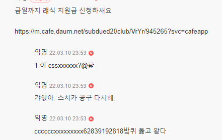 각종 음식을 준다고 꼬셔서 이름을 적게 한 후에 죠캎 빨간사 용지에 이름을 적는다.
