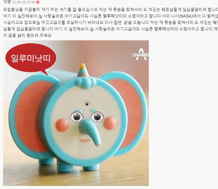 수시로 눈알, 눈알달린 각종 무언가(다양한 짤), 외계인 사진이 올라온다.