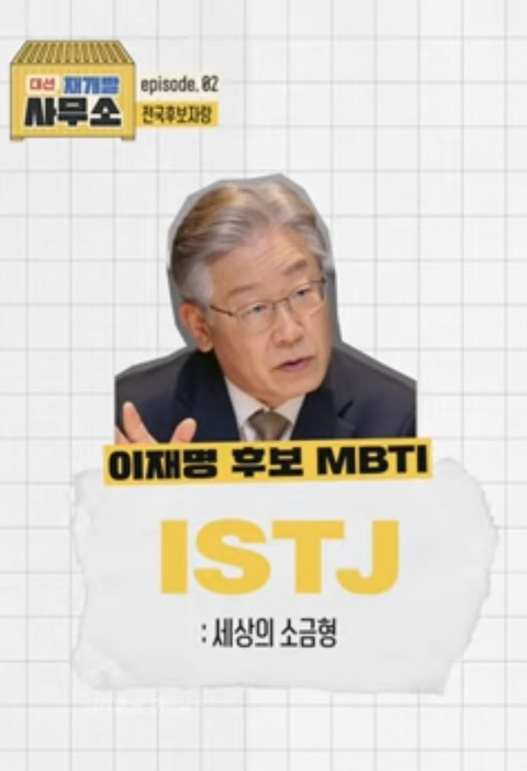 재명여시가 직접 검사한 게 아니라 영상에서 그냥 ISTJ라고 추측하신 듯! (이재명 측근인 김남국 의원 나와서 같이 얘기하니까 가까이 지낸 사람하고 얘기하면서 아마 ISTJ라고 추측한 듯 해!!!)