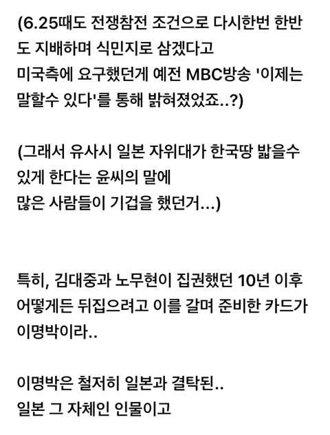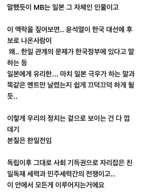 작성자미역붕어빵 작성시간 25.06.09 이명박 그냥 모럴없는 돈미새인 줄로만 알았지 이렇게 일본이랑 뿌리깊게 연관된 인간인 줄은 몰랐음...와시발 이새끼 숙청하고 친일파 전부다 숙청해야되네