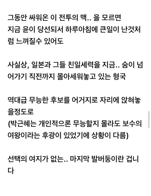 음침하게 공들인 탑이 대선 일주일 남기고 무너졌으니 얼마나 허무하려나ㅎ