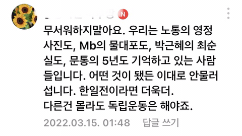우리가 총, 칼 대신 폰 들고 하는 행동들이 다 나라지키는 독립운동을 하고 있던 거였어