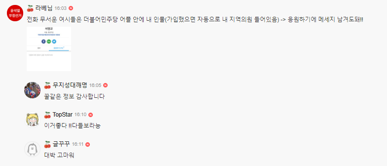 여시: 안녕하세요, 얼마 전 민주당 권리당원으로 가입한 OOO입니다.