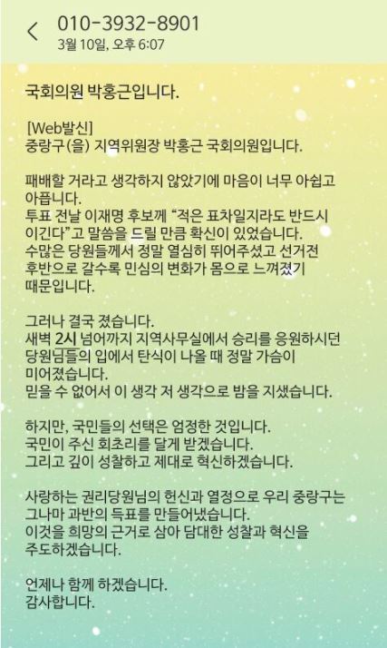 아래 문자 제공한 지역구 여시가 박홍근 의원 일도 잘한대!