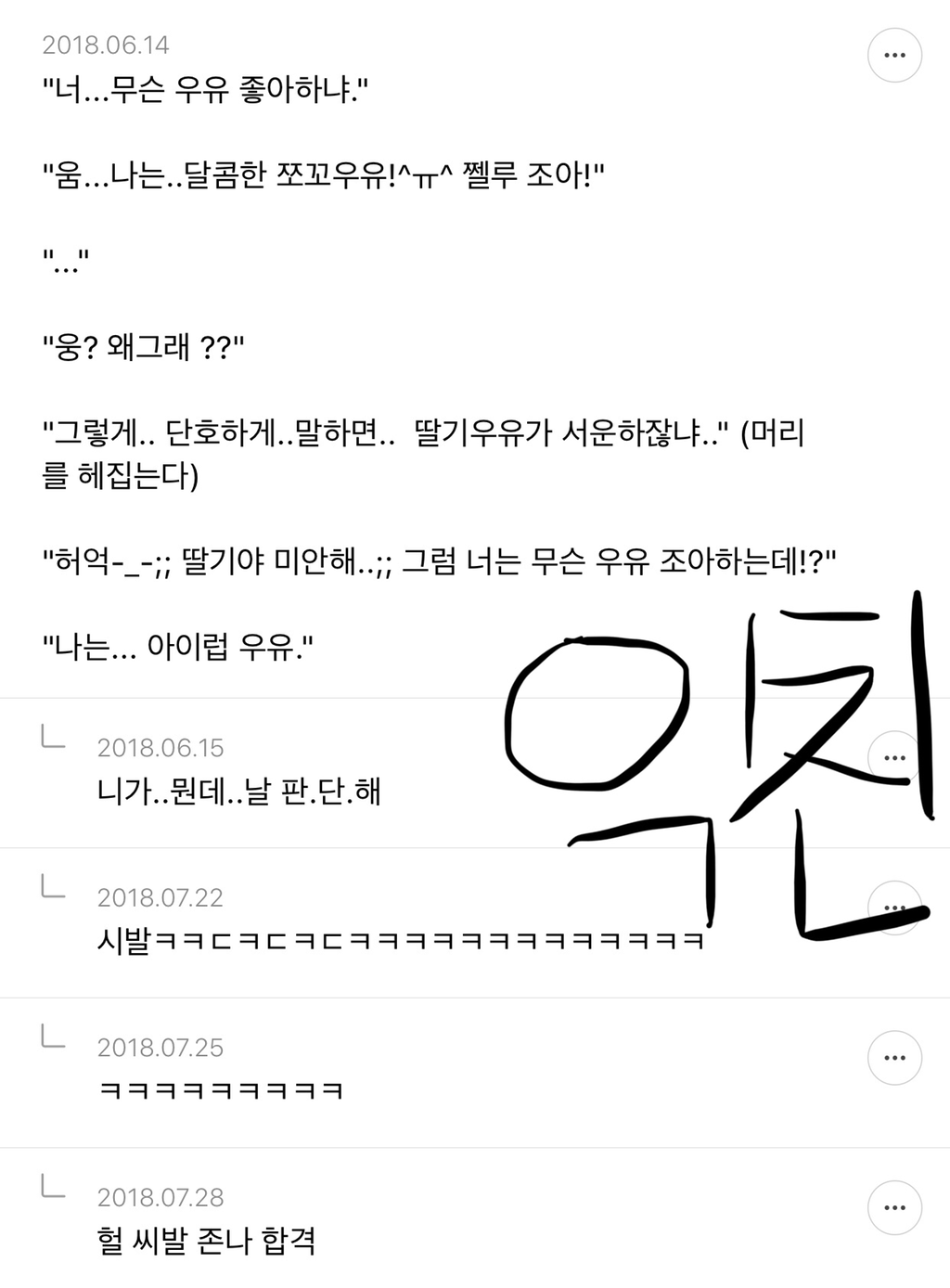 익친에 있는 오글달글이라고 오글거리는 말 써놓는 달글이야