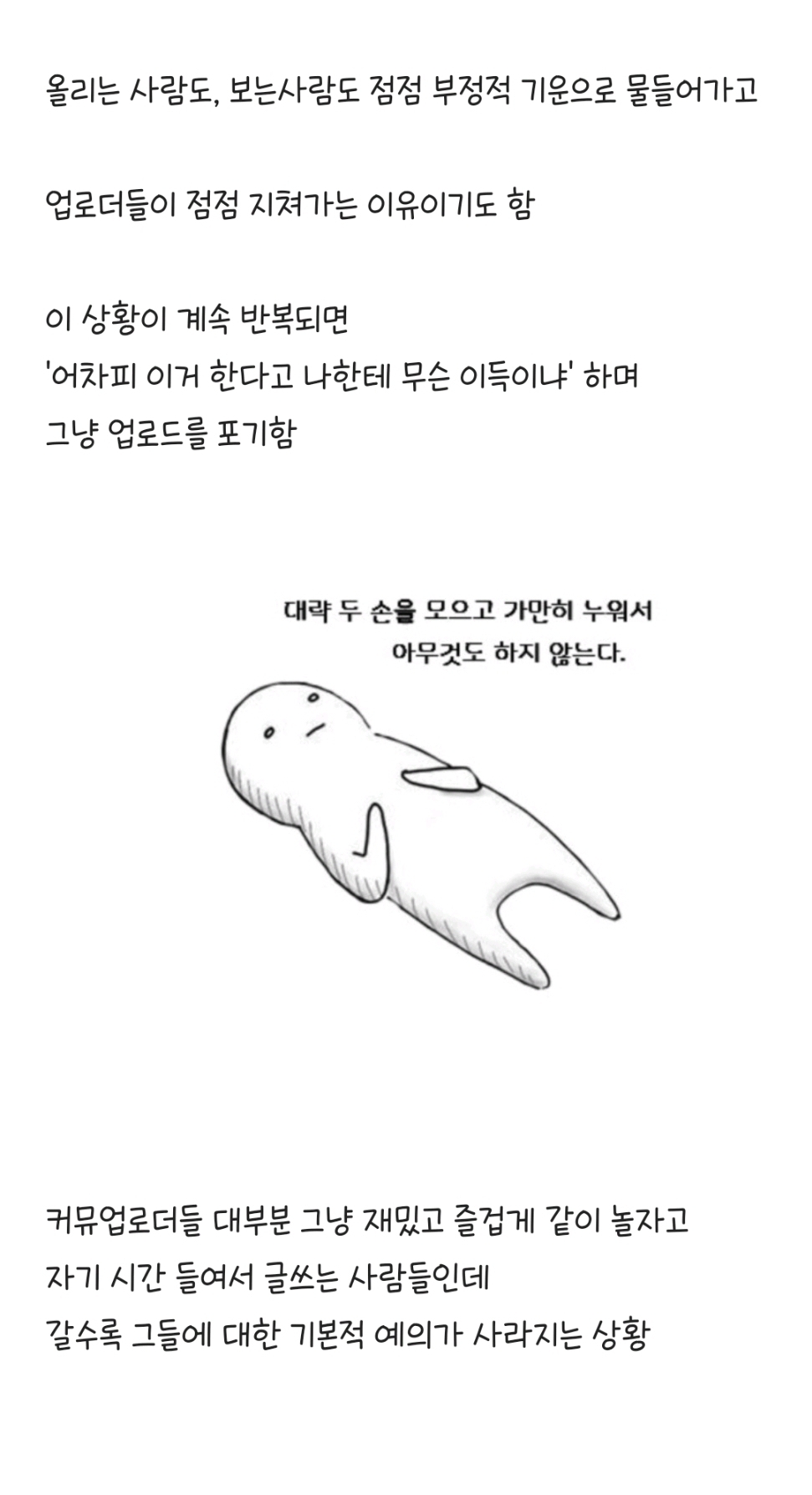 [스크랩] [흥미돋]커뮤 업로더들이 점점 커뮤에 질리게 되는 과정.jpg 작성자시진핑푸틴재기내소원|작성시간22.03.19|조회수2,234 목록 댓글 1 글자크기 작게가 글자크기 크게가 출처 : https://www.dmitory.com/issue/218943279 다음검색 스크랩 원문 : *여성시대* 차분한 20대들의 알흠다운 공간 현재 게시글 추가 기능 열기 북마크 공유하기 신고 센터로 신고 댓글 댓글 1 댓글쓰기 답글쓰기 댓글 리스트 작성자자가자가비 | 작성시간 22.03.19 열심히 캡쳐해서 글썼는데 저런 댓글보면 힘빠져,, 그래서 글 맨 밑에 무맥락혐오x 악플x 써놓음.... 댓글 전체보기