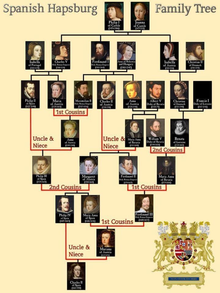 16세기부터 18세기 초까지 유럽(주로 스페인)을 통치했었던 합스부르크 왕가의 왕과 왕비는 근친혼으로 인해 "합스부르크의 턱" 이라고 불리는 유전병을 가졌다.