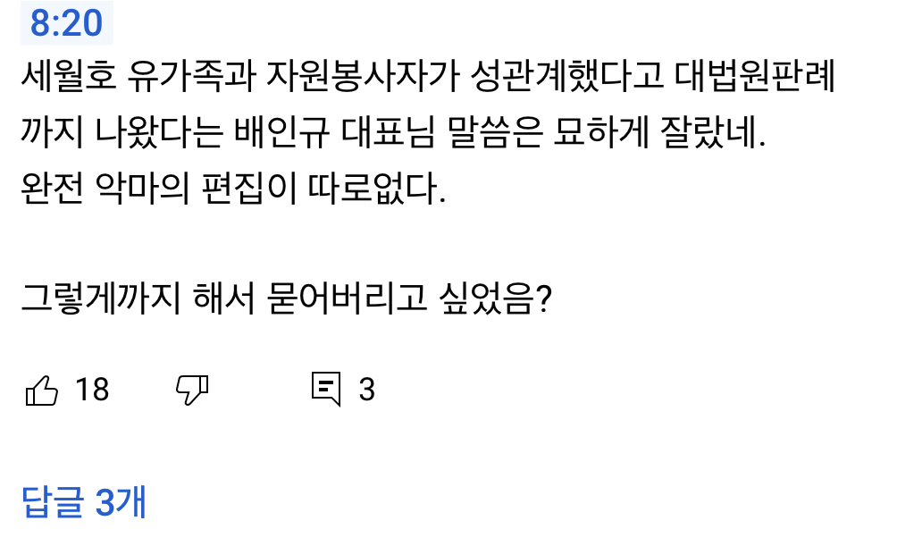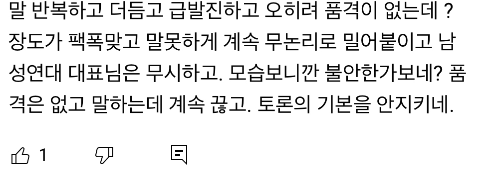 댓글에서 언급된 신남성연대 배인규 대표와의 토론 영상. 전부 장도방송 유튜버 영상이야. 신남성연대 조회수는 올려주고 싶지 않아서 그쪽 영상은 제외했어