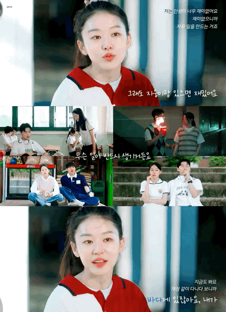 "저는 인생이 너무 재미없어요. 재미 없으니까 자꾸 일을 만드는 거죠. 그래도 지웅이랑 있으면 재밌어요. 무슨 일이 반드시 생기거든요. 지금도 봐요. 쟤랑 같이 다니다 보니까 바다에 있잖아요, 내가."