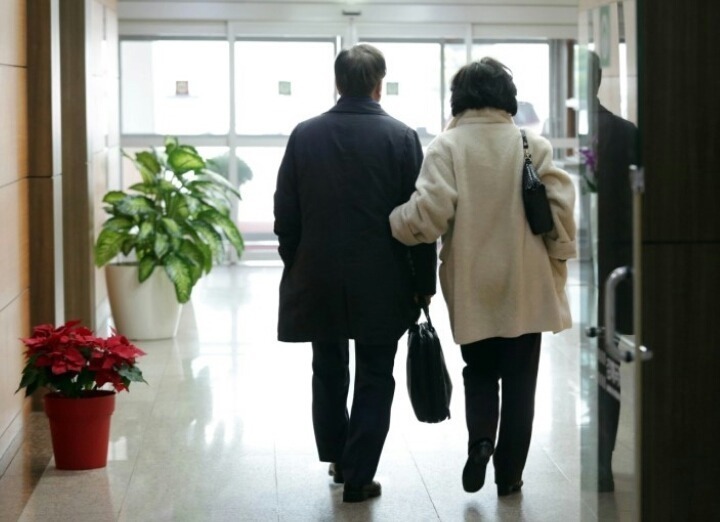 2012년 3월 15일, 18대 대선 선거운동때 두 사람의 결혼기념일을 맞아 지지자들이 준비한 ‘깜짝 결혼기념일 행사’ 같이 보는 모습.