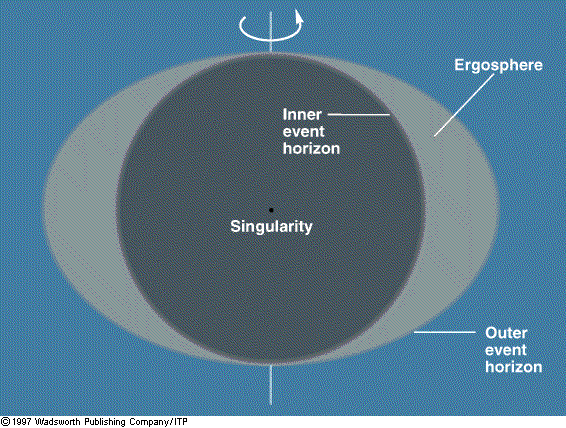 커 블랙홀은 작용권(Ergosphere)이라는 것을 갖는데,