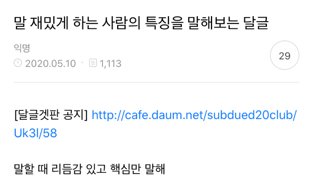 작성자벤치푸레수 작성시간 22.04.02 말 재밌게하는 법 다른 거 없어