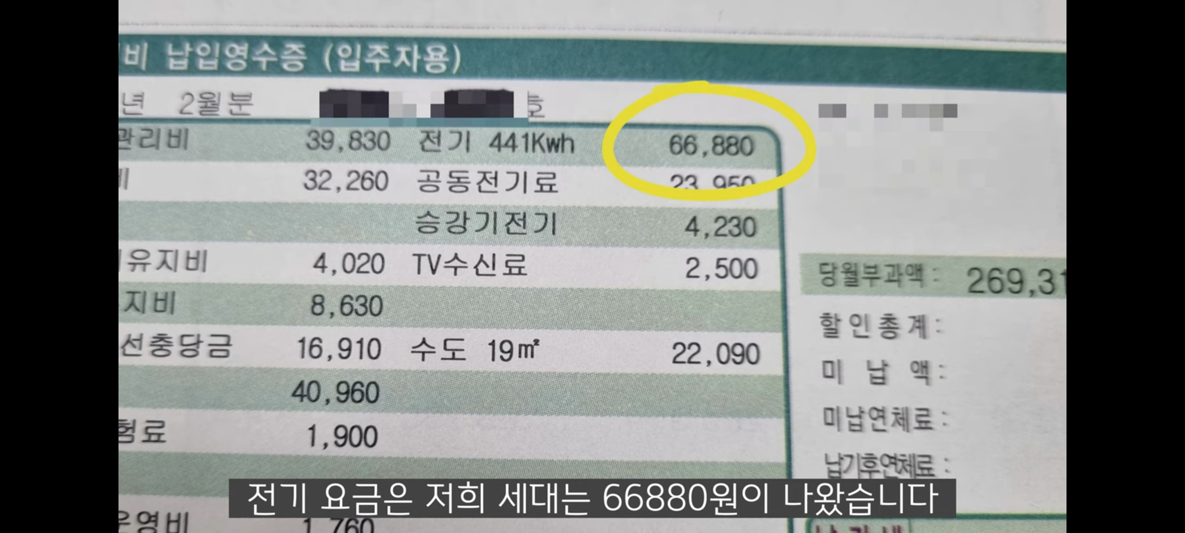 아무래도 아이를 키우는 집이라 세탁기+건조기를 맨날맨날 써서 다른 집보다 더 나온거 같아