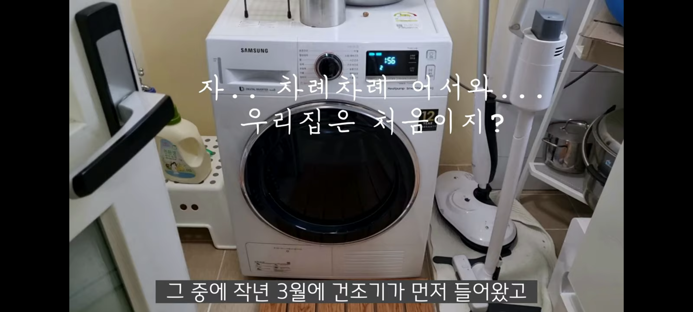 애 둘이니까 빨래는 미뤄봤자 이틀에 한 번은 해야되고, 그 빨래 널고 개는거 일이야ㅠ