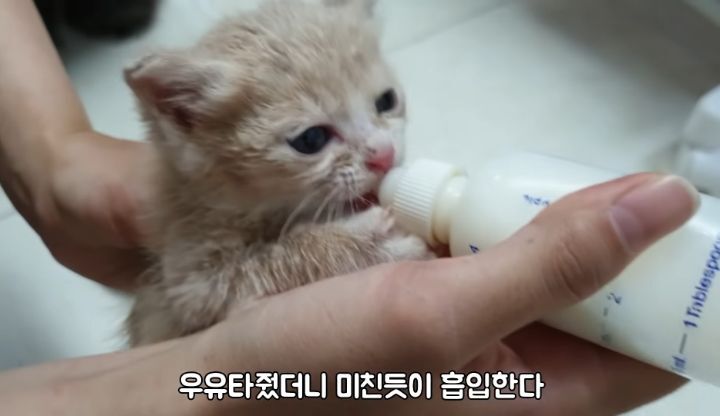 결국 집에 데려와서 우유먹이는데 엄청 흡입함