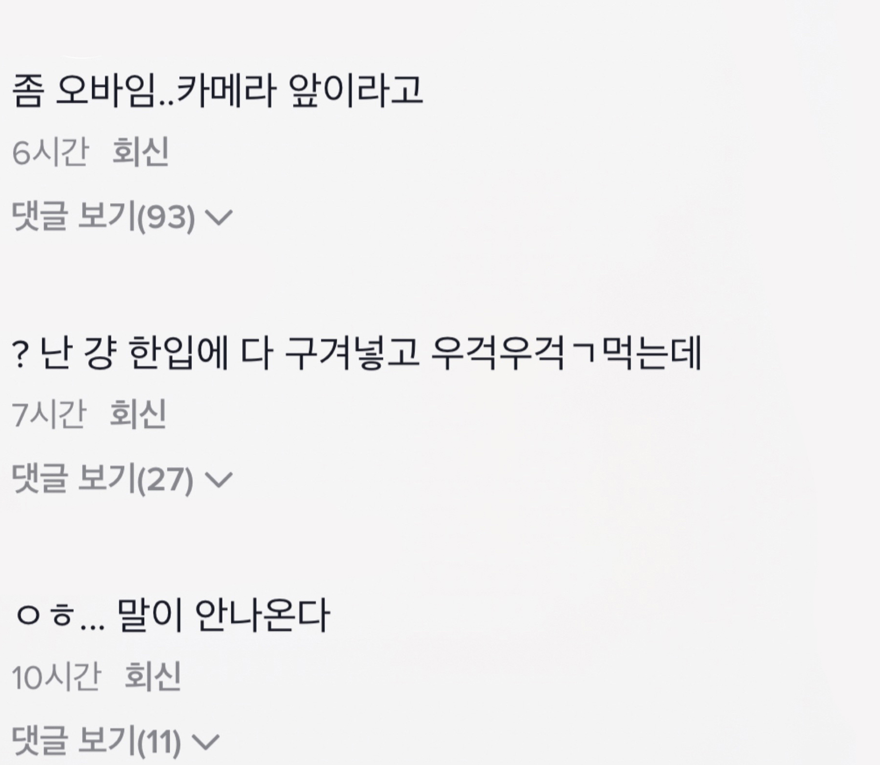 [흥미돋]현재 딸기 두손으로 먹었다고 까이는 장원영 작성자슬햐|작성시간22.04.11|조회수87,413 목록 댓글 1,049 글자크기 작게가 글자크기 크게가 출처 : 여성시대 슬햐네이트판 이번 전참시에 아이브가 나왔는데거기서 장원영이 딸기를 저렇게 두손으로 먹었다고 까이는 중 진심 별것도 아닌걸로 까여서 어안이 벙벙 다음검색 현재 게시글 추가 기능 열기 북마크 공유하기 신고 센터로 신고 댓글 댓글 1,049 댓글쓰기 답글쓰기 댓글 리스트 작성자의무 | 작성시간 22.05.21 뭔 개지랄이냐 진짜 작성자부자될사럄 | 작성시간 22.05.21 ?.? 작성자대한민국 유일한 대통령 이재명 | 작성시간 22.05.22 이뻐서 이쁜것일뿐.. 추하게 열폭하지마시죠.. 작성자정떨뚝떨 | 작성시간 22.05.22 딸기가 씨바 무슨 산딸기 사이즈인 것도 아닌데 작위작위거리고 앉았네 작성자앙꼬츄모찌츄 | 작성시간 22.07.17 아무래도 발로 먹을순없으니까.. 댓글 전체보기