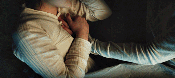 그의 손을 겹쳐쥐며 심장께로 이끔