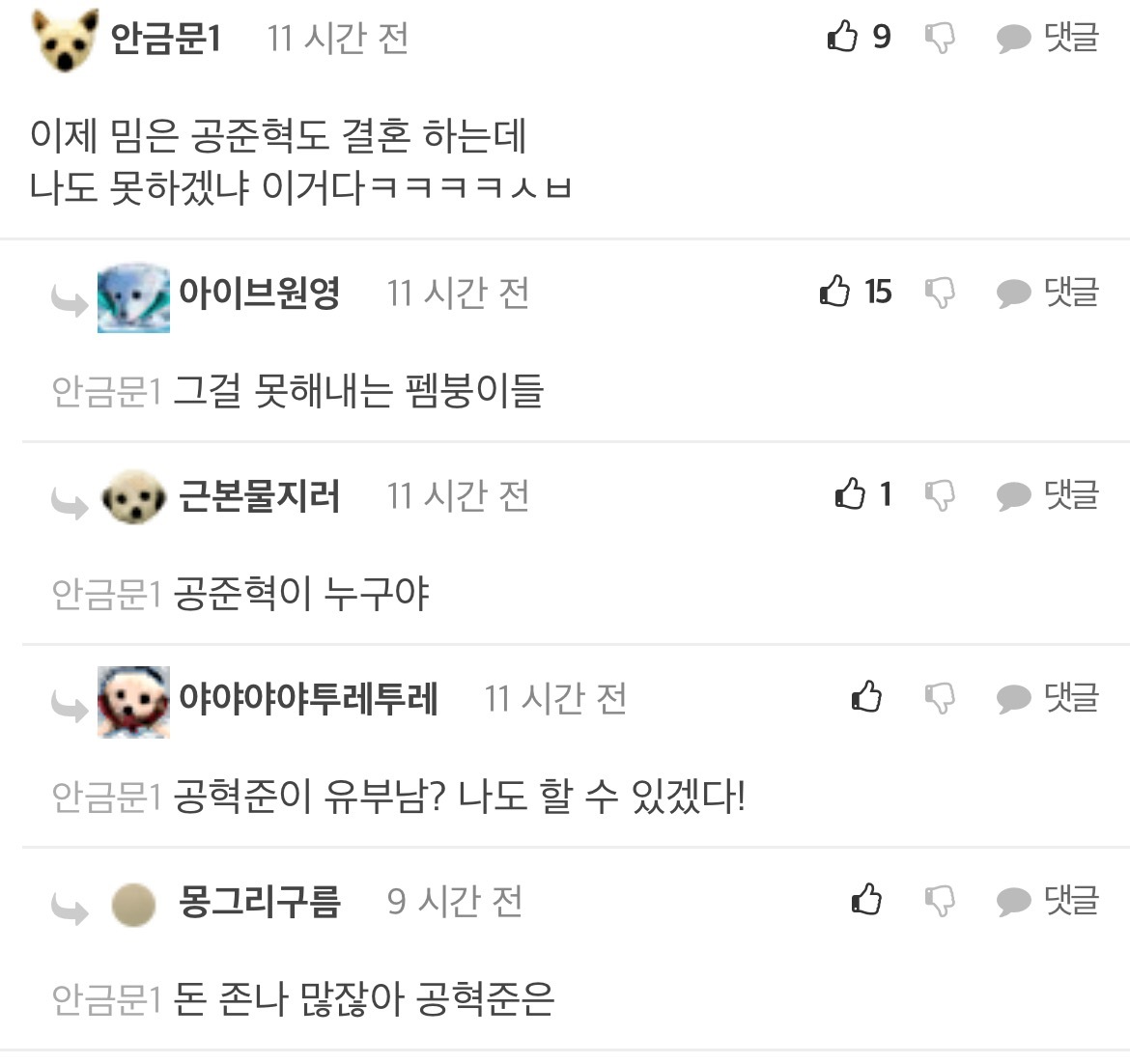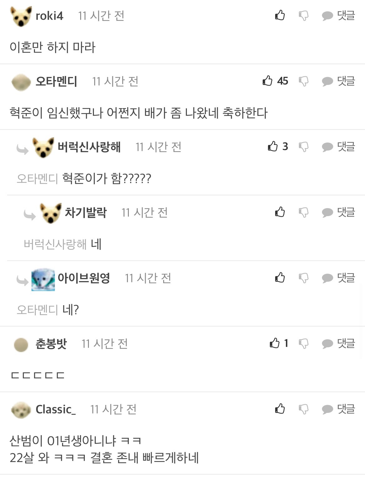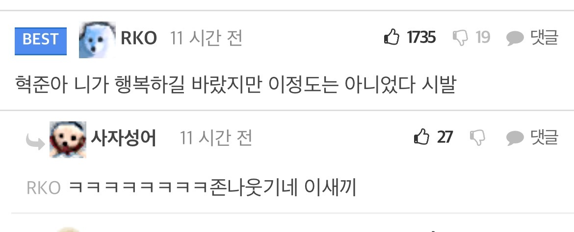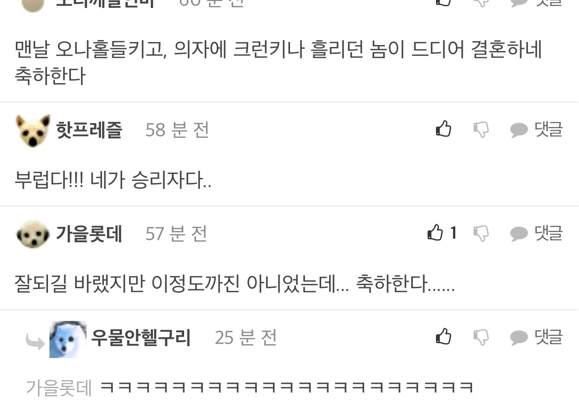 [흥미돋]산범 공혁준 결혼/속도위반 남초 반응 작성자(본인|작성시간22.04.13|조회수35,101 목록 댓글 68 글자크기 작게가 글자크기 크게가 출처 : https://m.fmkorea.com/4519268715악플ㄴㄴ남초 반응 관심 없으면 뒤로가기 다음검색 현재 게시글 추가 기능 열기 북마크 공유하기 신고 센터로 신고 댓글 댓글 68 댓글쓰기 답글쓰기 댓글 리스트 작성자윤석얼 | 작성시간 22.04.14 와ㅋㅋㅋㅋㅋ 인생 개씹ㅎㅌㅊ들만 모아놓은거 같음 답댓글 작성자윤석얼 | 작성시간 22.04.14 공혁준한테 자아의탁하는거 뭐임? 진짜ㅋㅋ 작성자2022년부자될거야 | 작성시간 22.04.14 어떻게든 합리화 하네ㅋㅋㅋㅋ 작성자햄반장 | 작성시간 22.04.15 월클아르테타는 왜 펨코하노 탈출해라 작성자홍만채 | 작성시간 22.09.06 크런키가 뭐지 댓글 전체보기